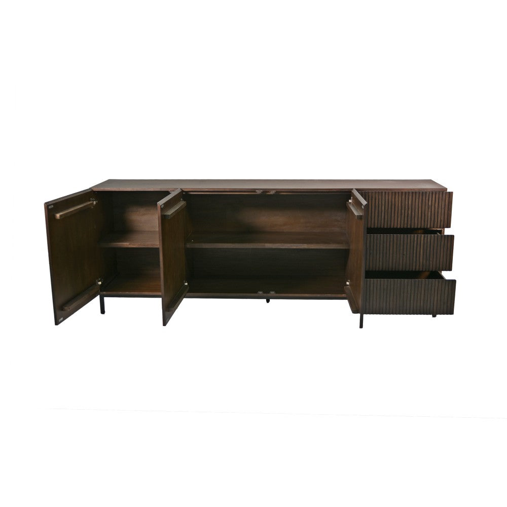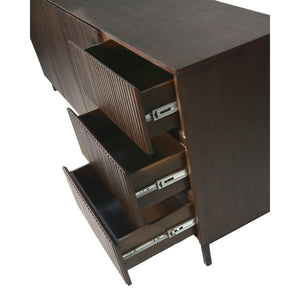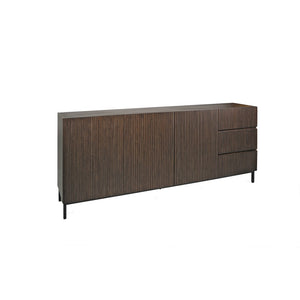 Le bahut Sevilla séduit par son design élégant et sophistiqué, sublimé par un revêtement strié en bois foncé qui lui confère un caractère unique et raffiné. Disponible en 185 cm et 225 cm, il allie style contemporain et fonctionnalité, offrant un vaste espace de rangement tout en apportant une touche de chaleur et de modernité à votre intérieur.