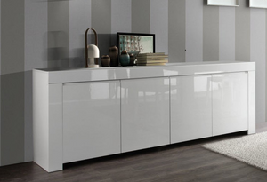 Le dressoir Amalfi incarne l’élégance contemporaine avec ses lignes épurées et sa finition blanc laqué ultra-brillant, apportant une touche de modernité et de luminosité à votre intérieur tout en offrant un espace de rangement spacieux et raffiné.