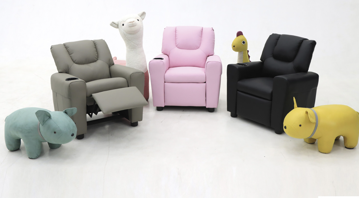 Design : fauteuil relax de petite taille, spécialement conçu pour les enfants, reprenant la forme d’un vrai fauteuil de salon.