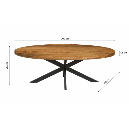 Table à manger 'Alexa' 200 cm Ovale Bois de Manguier