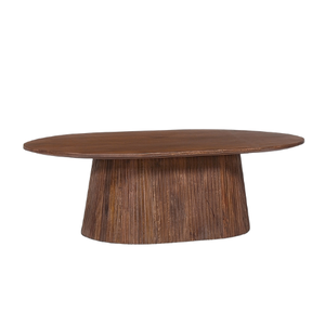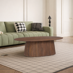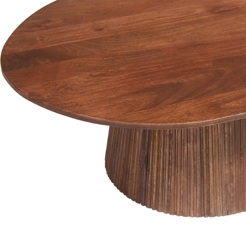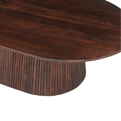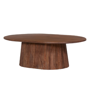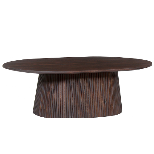 La table basse Miguel séduit par son design élégant et son allure sculpturale. Son plateau ovale aux lignes douces repose sur un piètement cannelé qui apporte du relief et une touche contemporaine à votre salon. Conçue pour allier style et fonctionnalité, elle s’intègre facilement dans tous types d’intérieurs, du plus moderne au plus chaleureux. La table basse Miguel est disponible en deux types de brun, afin de s’adapter au mieux à votre décoration et à vos préférences