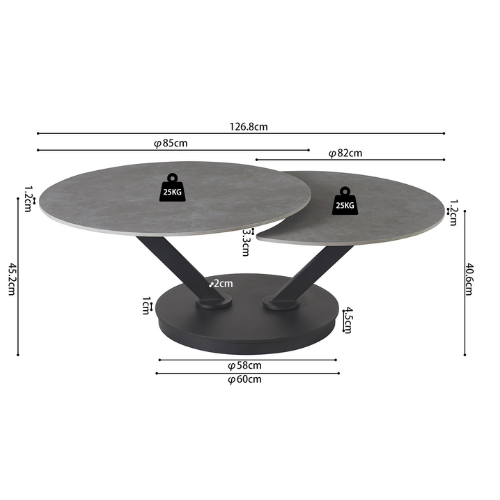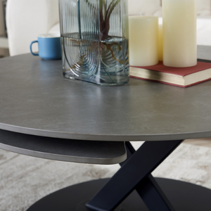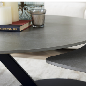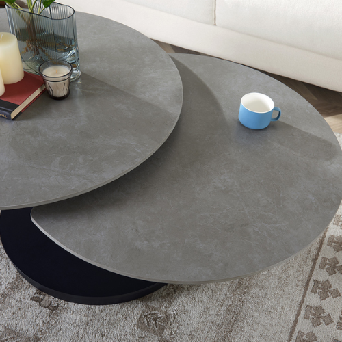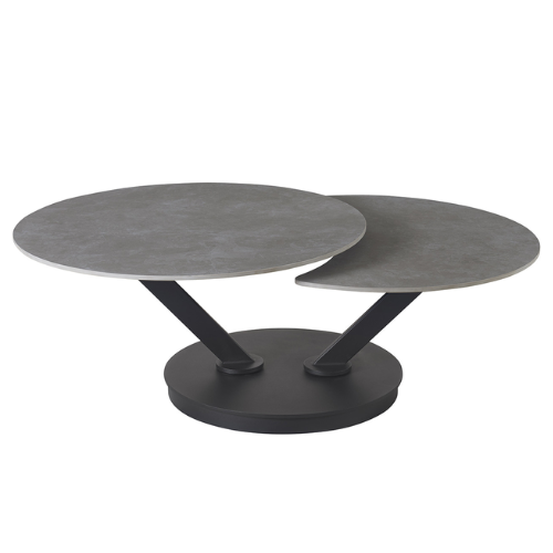 La table basse Nara se distingue par son design contemporain à double plateau rond, décalé avec élégance. Son plateau à l'aspect pierre grise apporte du caractère et une touche minérale au salon . Le piétement central noir en forme de V assure stabilité et style graphique . Fonctionnelle et esthétique , elle s'intègre parfaitement dans un intérieur moderne ou urbain.